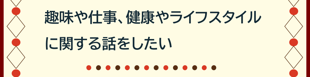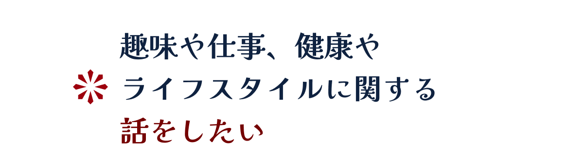 同世代の方々が出会い、趣味や仕事、健康やライフスタイルについて情報を共有できる場所となっています。