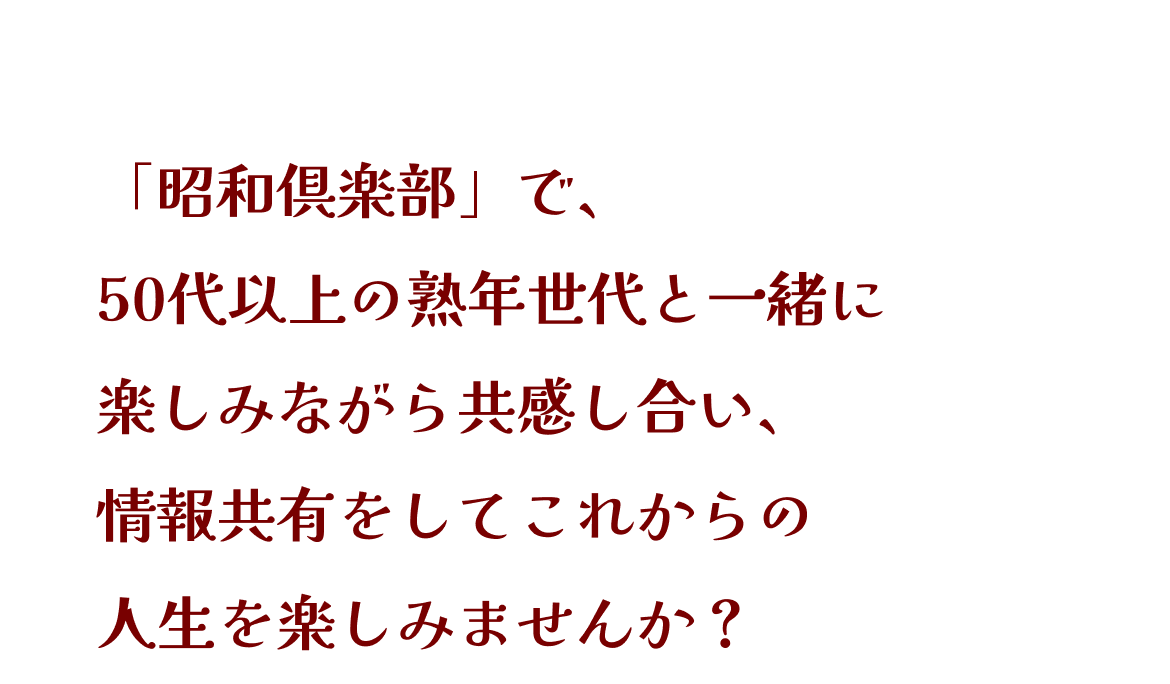 昭和倶楽部は、50代以上の熟年層に特化した情報共有SNSです。