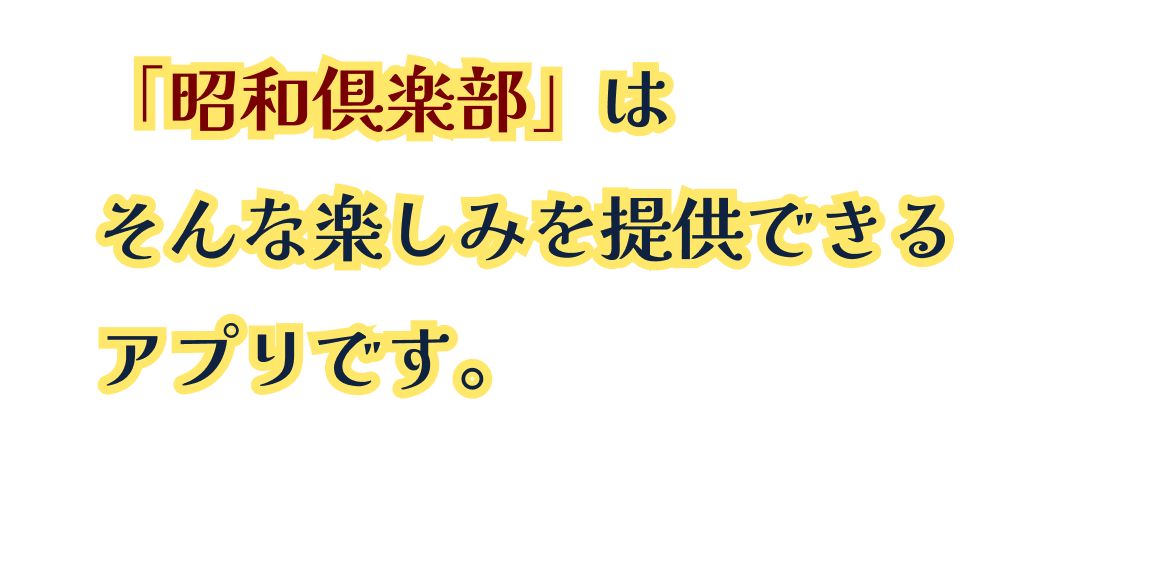 昭和倶楽部は、共感を大切にしたSNSです。同じ趣味や興味を持つ人と共感することで、熟年層の方々に新しいワクワクやドキドキを提供します。